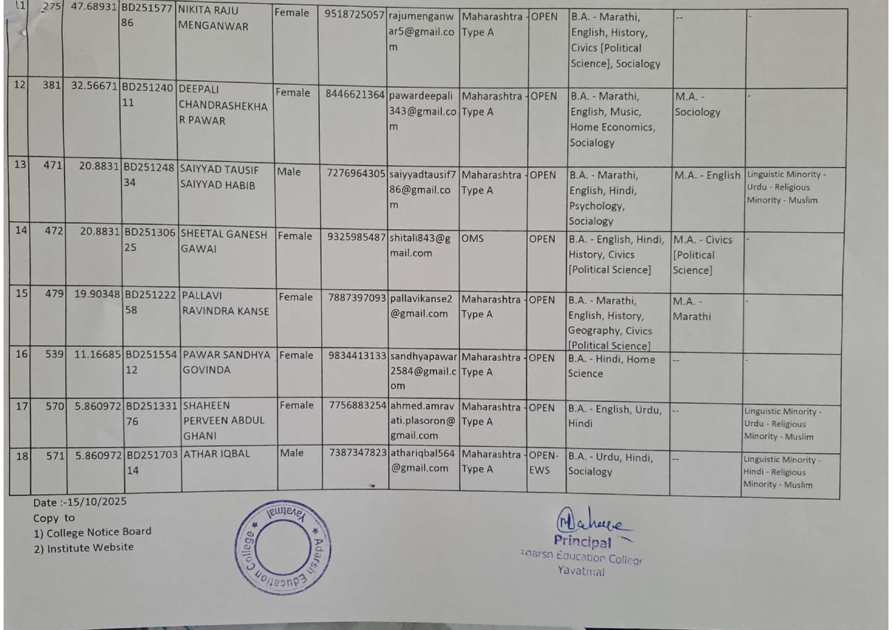 Admission List