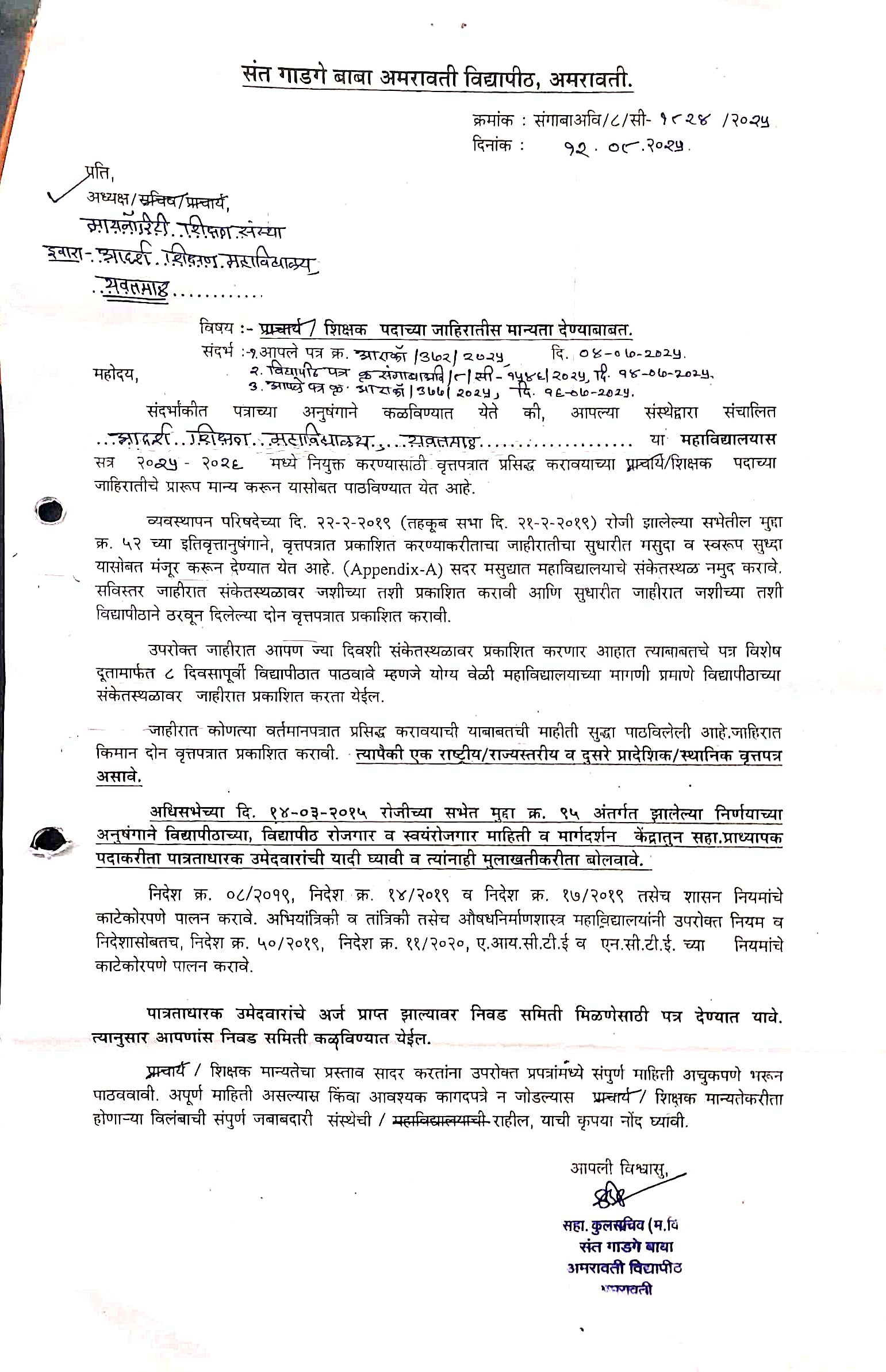 Post of Asstt. Prof. click here for detail qualification and experience Last Date to Apply 24/11/2025